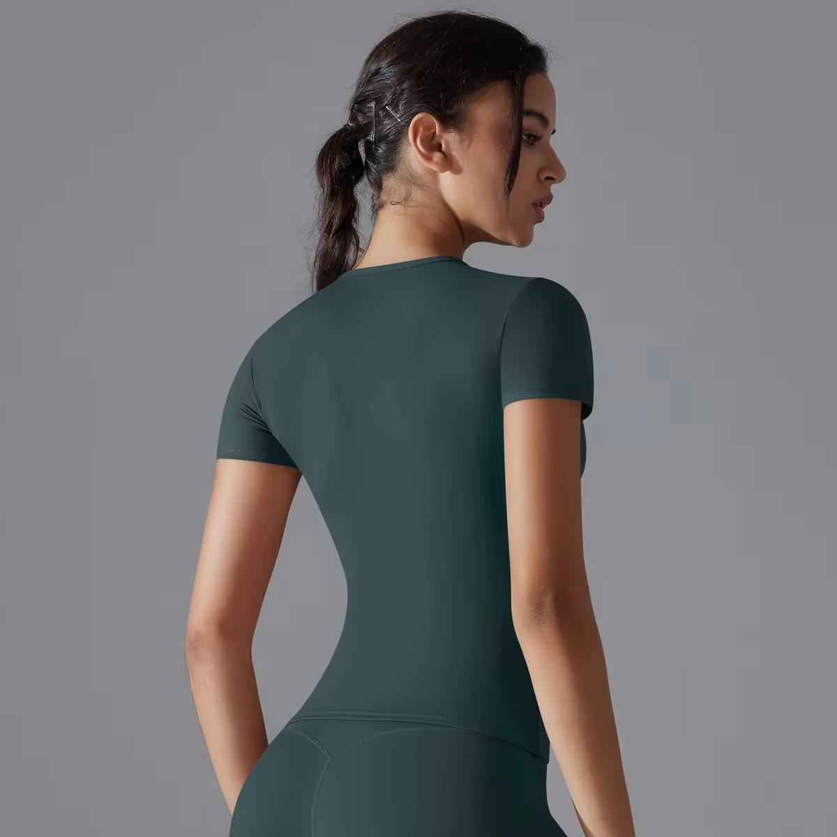 Elevate your activewear essentials with our Sculpt T-shirt, designed for a smooth, body-hugging fit. Crafted from breathable, stretchy fabric, this top provides both comfort and flexibility, making it perfect for workouts or everyday wear. The short sleeves and classic round neckline offer a clean, minimalist design, while the sleek black color ensures versatility for any outfit. Pair it with leggings or shorts for a complete, stylish look.
