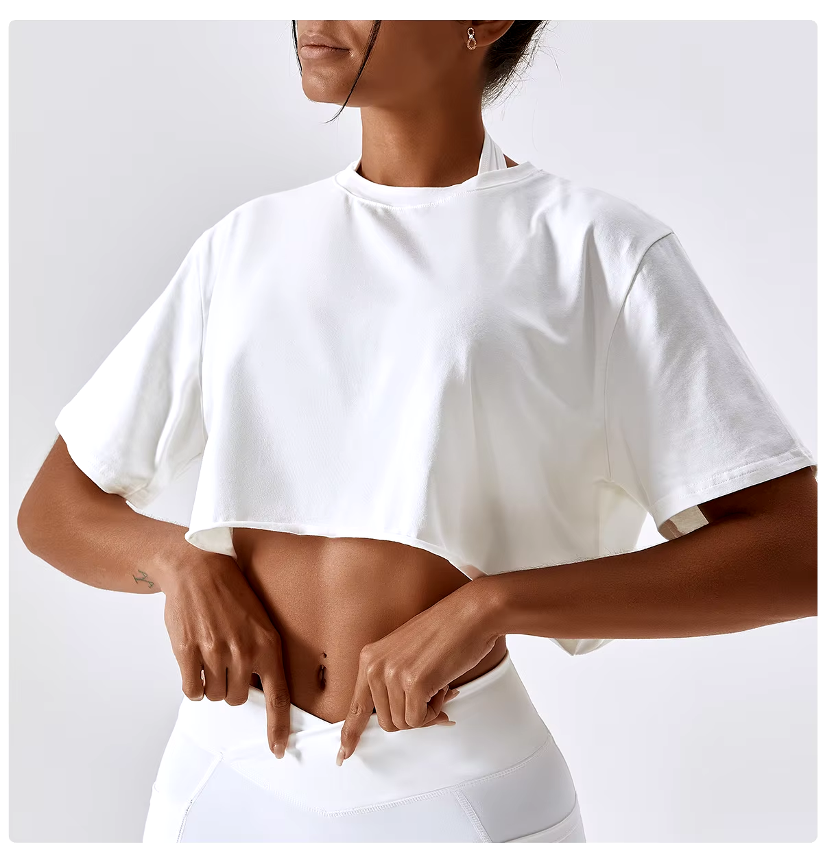 Bring a fresh, laid-back vibe to your activewear with our Cropped T-shirt. Designed for effortless style, this relaxed-fit top features a cropped length that pairs perfectly with high-waisted leggings or shorts. The soft, breathable fabric ensures comfort during any activity, while the wide short sleeves and round neckline offer a casual, sporty look. Whether you're at the gym or out with friends, this top is perfect for a chic, casual look.